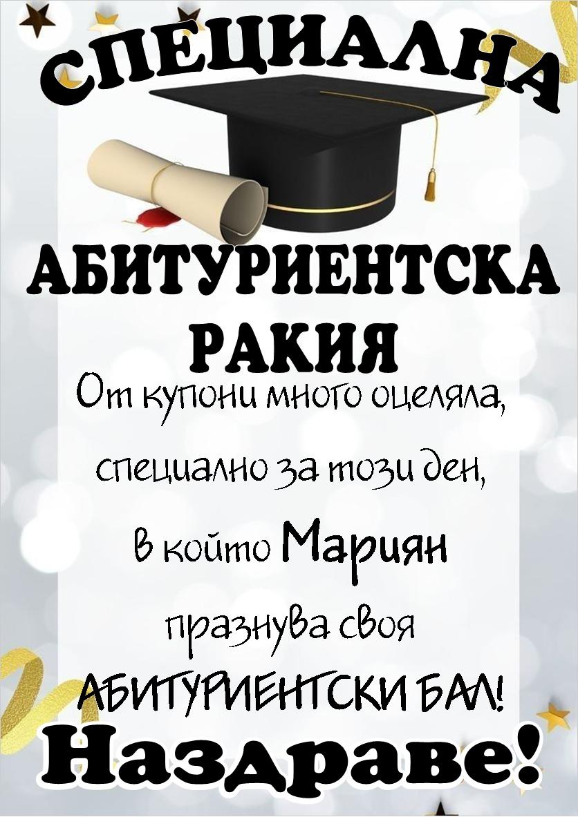 Самозалепващ етикет за Абитуриентски бал. Всеки етикет се изработва персонално за Вашия повод.