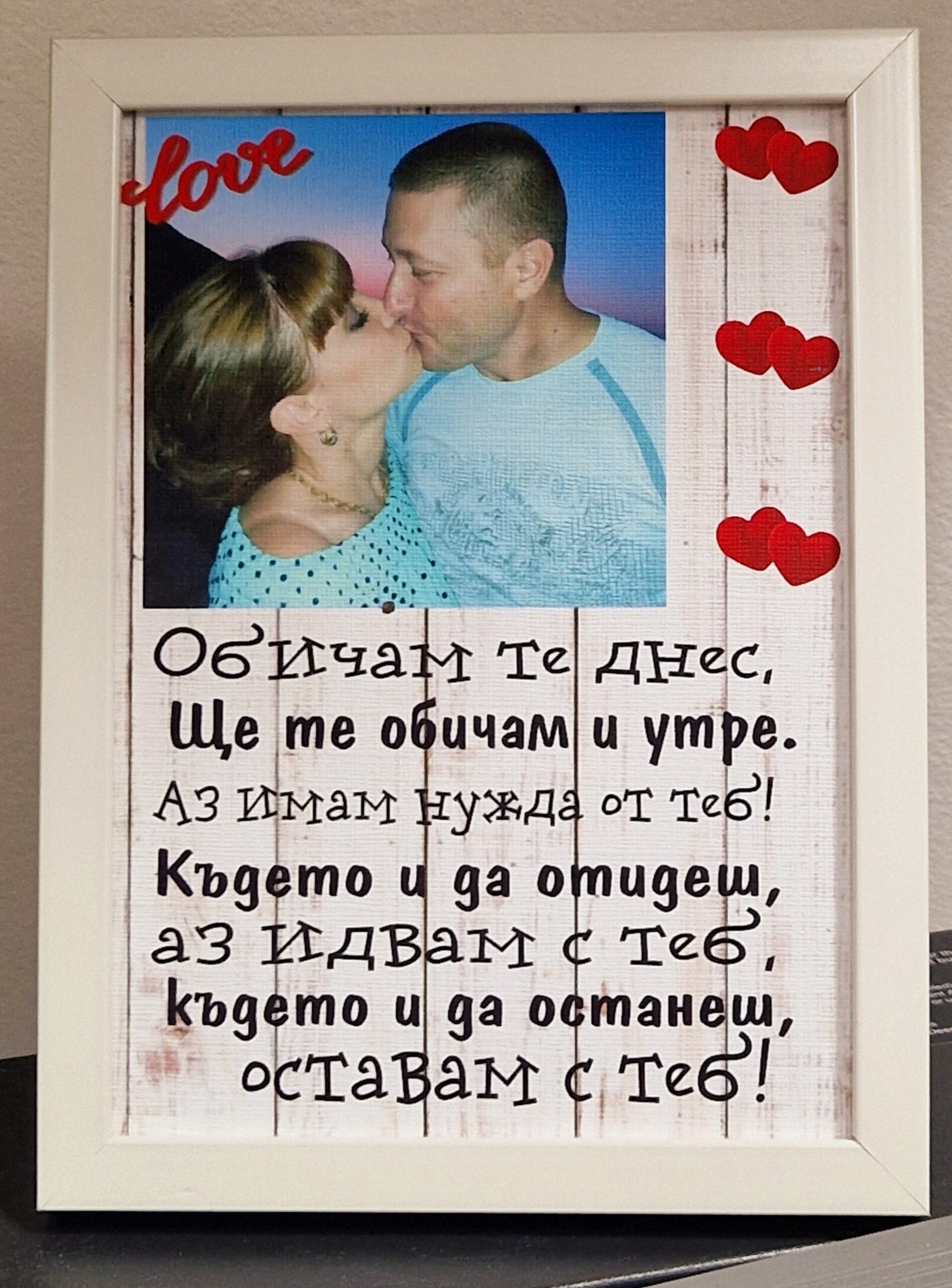 Стилно оформено послание за вашите любими хора, поставено в дървена рамка.