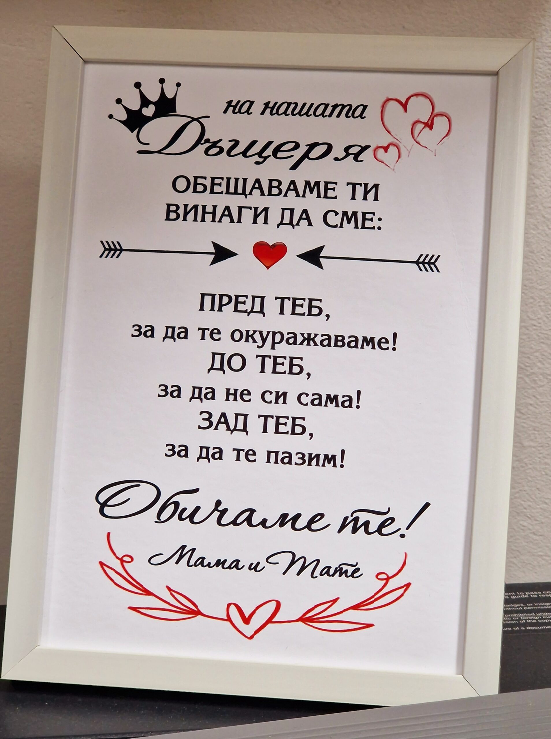 Рамка с послание за дъщеря